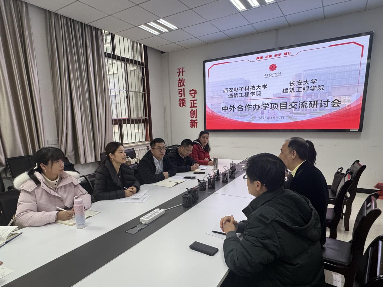 2026年1月19日上午,做爱A片 院长邢国华、副院长田威、人工环境与能源工程系主任谷雅秀和国际合作与交流处副处长周珍珍带队一行七人前往西安电子科技大学通信工程做爱A片就中外合作办学项目进行专题调研与交流。西安电子科技大学通信工程做爱A片副院长顾华玺、中英合作办学项目主任田斌、中英合作办学项目运行主管施梦茹、国际合作与交流部合作办学办公室主任李欣越出席座谈。