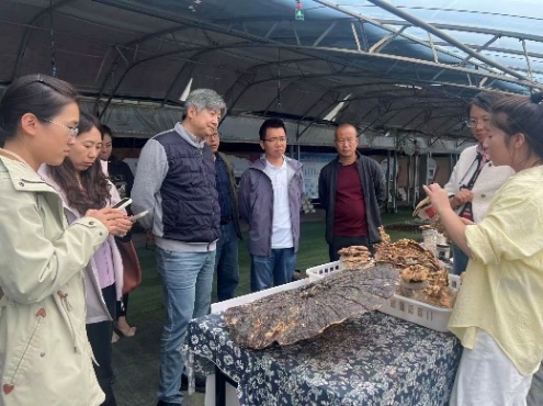 在昌盛光伏生态科技园,党员们实地考察了光伏、农业一体化技术应用场景,就“分布式能源系统在乡村建设中的适配性”展开专业研讨。科技园内展示了科技与生态的融合图景,智能化温控大棚内种植着高端食用菌与有机蔬菜,光伏发电与现代农业实现“板上发电、板下种植”的立体发展。